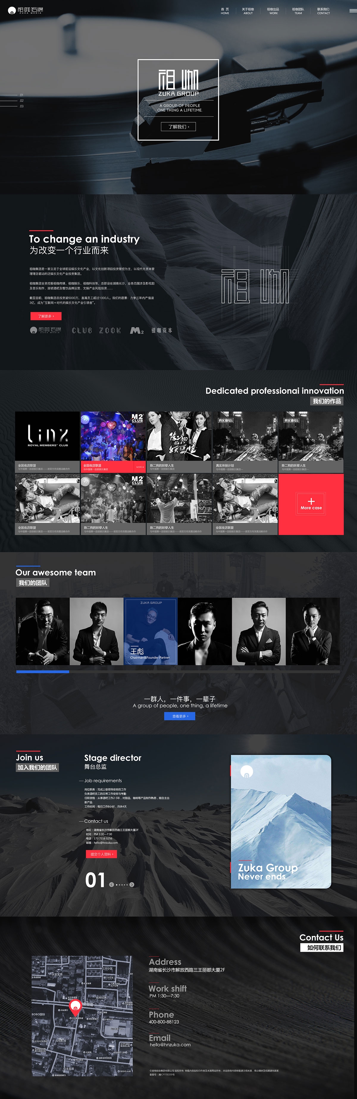 祖咖集团是一家立足于全球前沿娱乐文化产业,以文化创新项目投资管控为主,以现代化资本管理理念驱动的泛娱乐文化产业投资集团。 祖咖集团全资控股祖咖传媒、祖咖娱乐、祖咖科技等,总部设在湖南长沙 业务范围涉及影视剧及音乐制作、连锁酒吧及餐饮品牌运营、文娱产业风险投资…… 截至目前,祖咖集团总投资逾5000万,直属员工超过1000人。